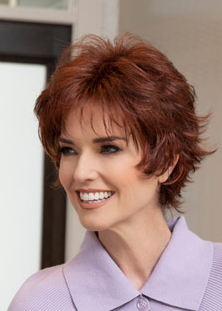 Victoria By Envy, Open Top, Traditional, Synthetic Wig . You’ll notice a lift in your mood and a spring in your step thanks to the sassy style that holds a tiny wave at the neck in this brief and elegant shag. You can choose this piece from your wardrobe for any event because it is so attractive, or you can wear it every day and feel good about yourself. Victoria’s open construction makes her lightweight and comfortable to wear while offering the most styling options.